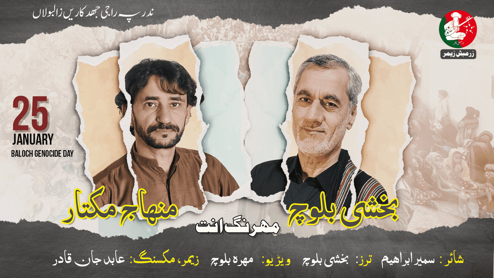زرمبش زیمرءِ نیمگ ءَ شنگ بیتگیں جارے ءَ گوشتگ بیتگ کہ سوت مھرنگ اِنت۔ شائر سمیر ابراھیم اِنت۔ زیمر مکسنگ آبد جان کادر ءَ کرتگ۔ اے سوت زوت شمارا چہ زرمبش زیمرءِ یوٹوب چینل ءَ دست کپ ایت۔
