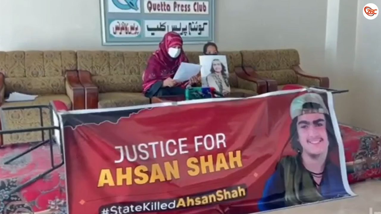 شال: پاکستانی پوج ءِ دست ءَ کشگ بوتگیں مستونگ ءِ جاہ منندیں ورنا  اھسان شاہ ءِ مات ءَ شال پریس کلب ءَ پریس کانپرنس کرتگ ءُ گوشتگ کہ منی زھگ اھسان شاہ شازدہ سالی ئیں نودربرے بوتگ کہ پاکستانی پوج ءَ نشانگ کرتگ ءُ کشتگ۔