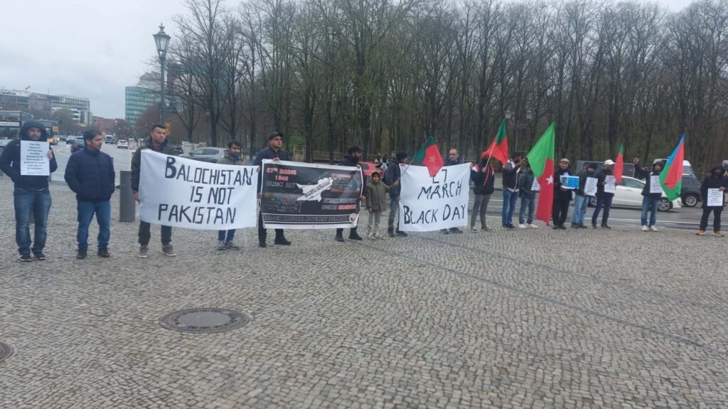 بلوچ راجی زْرمبشت (بی این ایم ) جرمنی تک ءَ 27 مارچ ،پاکستان ءِ سر ءَ بلوچستان ءِ زورگری ءِ روچ ءِ درگت ءَ سیاھیں روچ داشتگ ءُ زھرشانی کرتگ۔ 27 مارچ 1948 ءَ پاکستانی لشکر بلوچستان ءَ پترتگ ءُ بلوچستان زور گپتگ ئِے۔چہ ھما روچ ءَ بلوچستان ءِ مردماں پاکستان رد کرتگ ءُ آئی ءِ زورگری ءِ بگیری ءَ گھگیری کنگ ءَ اَنت۔